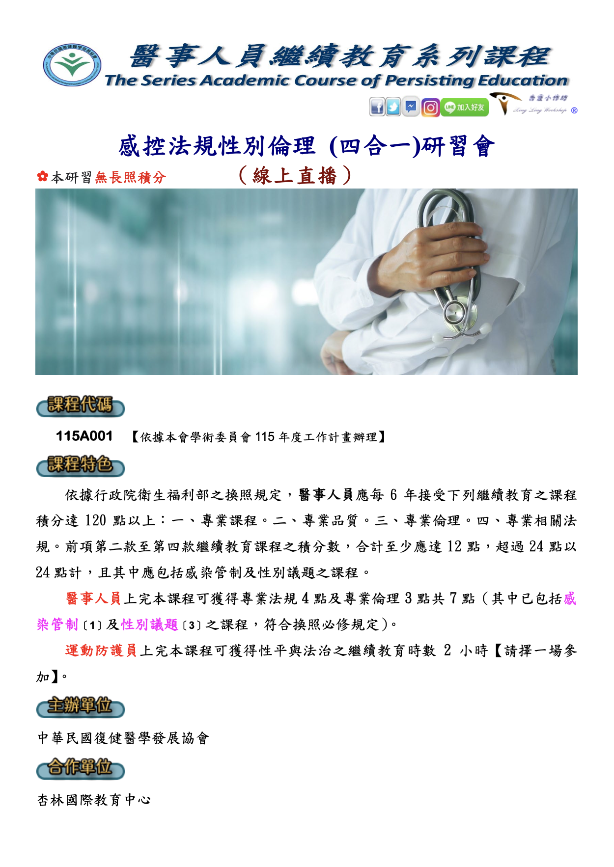 復健醫學發展協會−感控法規性別倫理(四合一)研習會