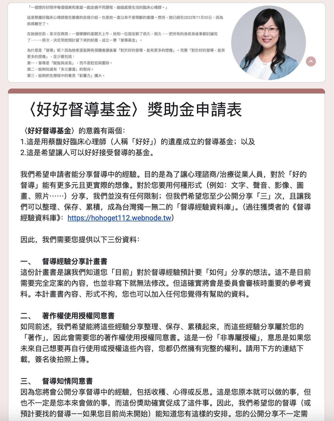 【訊息轉知】114年度《好好督導基金獎助金》正式開放申請!