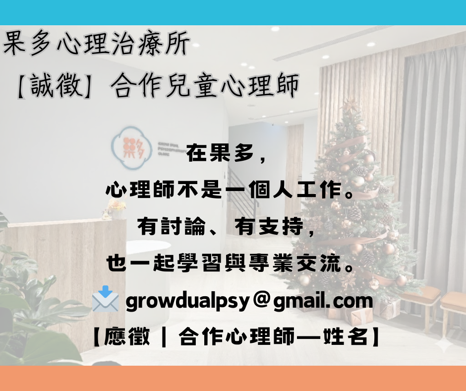 【徵才訊息】果多心理治療所−合作兒童心理師